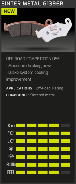 - Profesyonel seviye off-road ve yarış odaklı balata karakteri